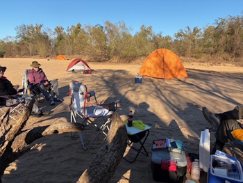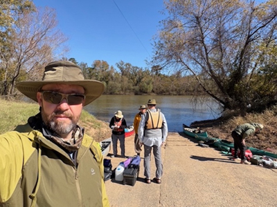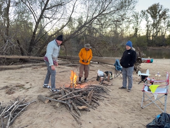 Five of the remaining GWS river rats paddled 24 miles on the Oconee from Hwy 280 near Mt Vernon to Bells Ferry landing just above the confluence with the Ocmulgee on Nov 11-13. The trip had to be moved from the Ocmulgee where water levels remained very low and debris from Helene was a concern. The first day was cold with temps below 30 that morning and highs about 55, and we woke up the next morning with ice on our tents and in our water bottles. But the second two days were very nice albeit breezy. No bugs at all! We enjoyed good campfires with plenty of wood both evenings and mornings on huge sandbars. Sightings included lots of deer, including two that swam from our sandbar to the far bank, wild hogs, bald eagle, wood ducks, and the usual turtles, anhingas, kingfishers, and kildeer. Most paddlers were content with the daily paddling distances shorter than on our usual forty-mile three-day trips. Campers were Curt and Irene Cole, Terry Ross, Grant Mangum, and trip leader Joe Mangum.