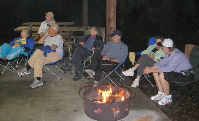 Eight GWS members went south to Paynes Prairie, between Gainesville and Ocala, for a weekend of hiking and bicycling in March of 2005. This was our first visit to this state preserve and we were very pleased. There were several nice tent sites along with the rv sites. The bathhouse was very modern and the park's visitors center and observation tower were excellent. There was a tremendous amount of birdlife here. From our campsite, we could watch bald eagles, osprey, and myriad of wrens, warblers, and other song birds. By walking down to the nearest lake, more eagles, egrets, herons, ibis, stork, and other water birds were easily spotted.